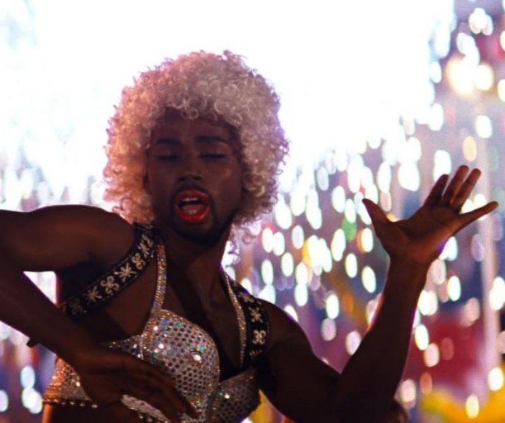 She may be disruptive in conservative settings, but there’s no malice in The Lady Chablis, and unlike Shiniqua or Mercutio, she dispenses only blessings. The same can be said of the drag queen played by Roderick Leverne in Neptune’s Rocking Horse. She opens the film dressed in ‘60s finery – psychedelic stockings, white heels, pink mini-skirt, matching pink wig – as two policemen roughly lead her out of a New York City apartment building. Her hands are cuffed behind her but she breaks free and tries to run, so one of the cops throws his club at her legs and sends her sprawling to the ground. They pick her up, her forehead bleeding, and stuff her in their patrol car and drive off. She’s last seen in their back seat, her grim and bloodied reflection caught in the rearview mirror.