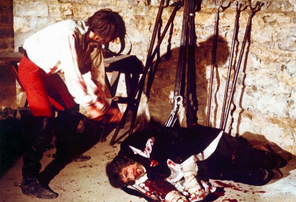Scream and Scream Again was the horror film Reeves would have directed in 1970, had he lived, and it would have reteamed him with Vincent Price – an unexpected collaboration, insofar as the two men fought constantly in making Witchfinder General. Reeves, disappointed at not having Donald Pleasence play Hopkins, was determined not to indulge Price in the humor and flamboyance that the actor had brought to his other horror films. They clashed throughout production, and stories abound of Reeves’ insulting treatment of Price, and of Price’s fury at Reeves. Ogilvy recalled the director telling his star, “Could you take it DOWN a bit?” and “I really don’t want one of these Edgar Allan Poe performances. I actually want a real man.” That last remark was a double-edged shiv, with Price being bisexual and prone to camp off- and onscreen. (Price would say of Ogilvy, “Oh my God! She’s so pretty and she rides that fucking horse so well!”) To the film’s composer Paul Ferris, Price declared, “That young Michael Reeves, he’s so young, so handsome, so talented, and I hate him!” Summing up the tensions is a photograph of the two men on location, each turning away from the other as if repulsed by his very sight.