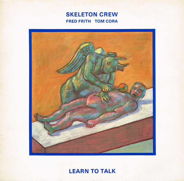 Frith has the imagination, energy, and musicianship to establish himself among the most exciting vocalists working today, but he has to strike consistent balance between style and communicability. I’m sure his innate restlessness and curiosity will jar him out of any impasse in his singing. That liveliness has already prompted some welcome alterations to Skeleton Crew’s sound for their album Learn to Talk (1984). It would have been too easy for Frith and Cora just to set up their forest of equipment in the studio, play a couple of sets, and release the smoothest take. Instead, Learn to Talk is a montage of straight performances and studio alterations, some of which involve manipulating the vocals. The studio’s possibilities are too tempting for Frith to pass up, and so the album explores some effective echoes and double-tracking; timbrally, the most striking flourish is the tiny pinched Frith vocal for “Not My Shoes.” Learn to Talk is still intended to be representative of the band’s sound, and so it doesn’t really go to town in the studio. The arrangements pretty much re-create their live sets, which means you hear a lot of wonderful playing – the guitar-cello duo of “Que Viva” may be the standout. Yet the album isn’t all that representative of Skeleton Crew’s exuberance and fun. The emphasis is on the grimmer of their songs, and the overall effect, both lyrically and vocally, can be rather strident. (Thank goodness they included Cora’s delightful, ever fresh instrumental “Zach’s Flag”!)